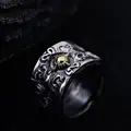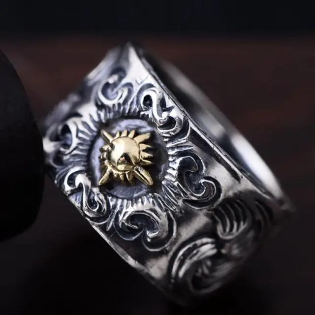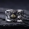 70% OFF 32881052596 Guaranteed 925 Sterling Silver Jewelry Solar Deity Rings For Men Vintage Flower Pattern Engraved Bi