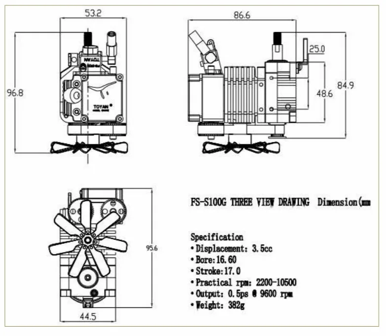 - Product name : FS-S100 Four-stroke Methanol Model Engine Hi-tech Birthday Gift