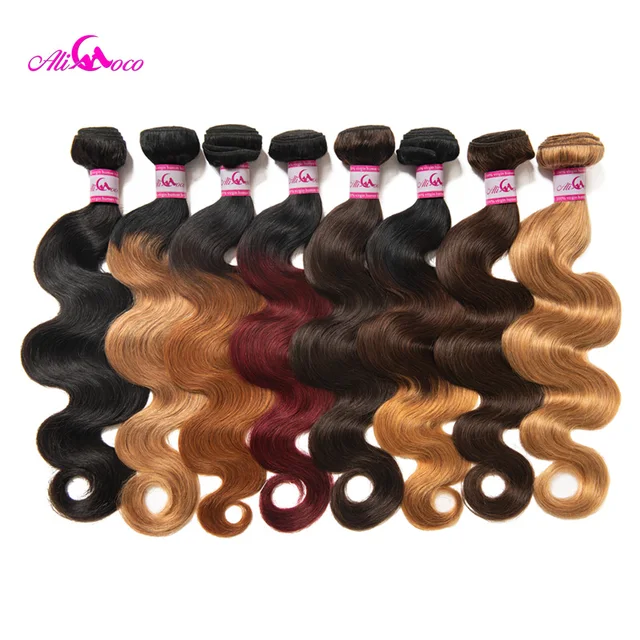 Ali Coco Brazilian Body Wave Hair Extensions "8-30" inch 100% Human Hair Weave Bundles 3/4 PCS Omber Remy Hair Bundles
